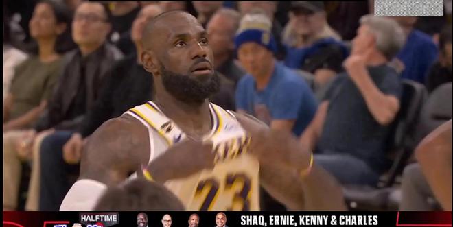 第二节湖人又把火力集中在内线,频繁的造杀伤,并且连连得分。而勇士队命中率依然不高。本节詹姆斯大爆发,他里突外投拿下14分,投篮六中五命中率达到了83.3%。算上第一节的两记3分,他半场3分出手四次全部命中,半场就砍下了20分4个篮板4个助攻。半场结束,湖人队65:47领先达到了18分。